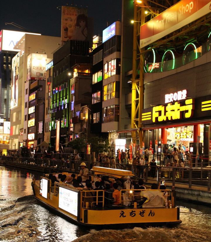 乘坐可以在道顿堀游览的道顿堀水上观光船 (Tombori River Cruise)