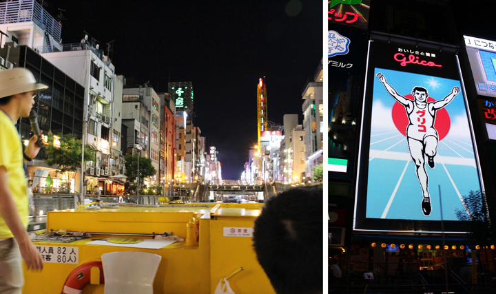 怎么全都是船?没有没有,大海、护城河和河川是不一样的,还是不错的吧。霓虹灯闪烁的道顿堀之夜真的很漂亮!格力高的招牌就在眼前~♪