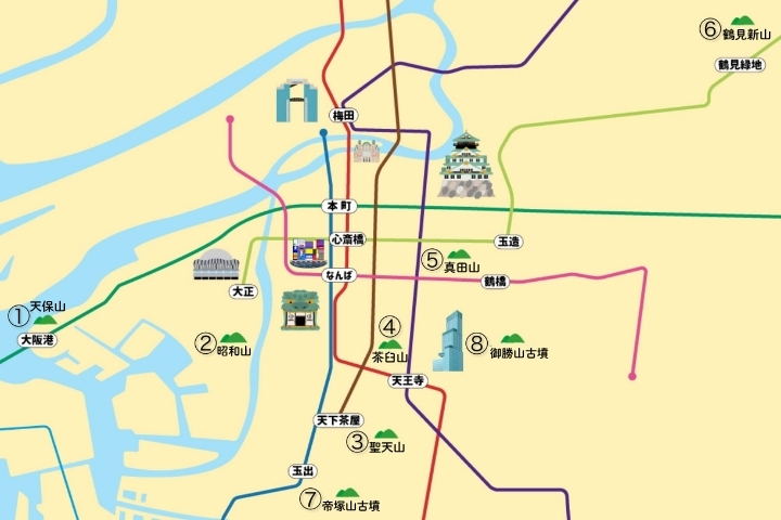 初夏新绿嫣然,宜人的季节来到了。说到适合这一季节的户外运动,那必然是徒步旅行啦!大阪的市中心总给人一种高楼大厦林立的印象,实际上这里也有很多可以边享受自然风景边散步的地方。不能出门的日子看来还要持续一段时间,这次就为大家介绍一下大阪市内可以轻松前往的八座山。说到山,大家一般都会联想到高高耸立的景色。但在高低起伏较少的大阪市内,到底都有哪些山呢?是不是很好奇呀!