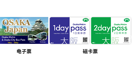Osaka Metro&Osaka City Bus Pass 1day、2day 电子票&磁卡票